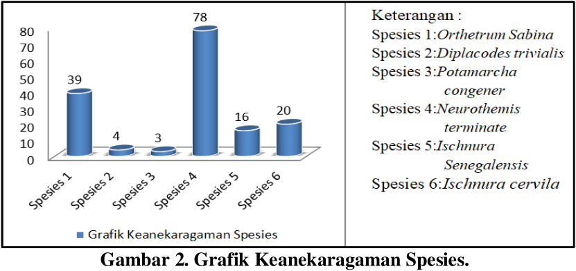 Indonesia is an archipelagic country, one of the islands in Indonesia is Lombok Island. One of the cities on Lombok Island is Mataram City. In Mataram there are rivers that divide the city, one of which is the Jangkok river. In the Jangkok River there are various kinds of biodiversity, including a diversity of dragonfly species (Odonata). Dragonflies also act as bioindicators determining water quality. This research aims to identify the types and determine the diversity index of dragonflies (Odonata) in the Jangkok River, Mataram City. This type of research is exploratory descriptive. The sampling technique determined three stations (station I in Sesaot, station II in Lingsar, and station III in Dasan Agung). Identification of Dragonfly species (Odonata) was carried out at the Biology Laboratory, Mandalika University of Education by analysis using the Shannon-Wiener formula (diversity index). The research results show that station I has the highest diversity index, namely 6,122 with species found, including: Orthetrum sabina, Diplacodes trivialis, Potamarcha congener, Neurothemis terminate, Ischnura senegalensis, and Ischnura cervila.