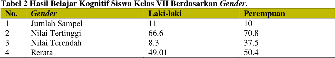 Perbedaan Hasil Belajar Kognitif Siswa Berdasarkan Gender Melalui Penerapan Model Pembelajaran Kooperatif Berbasis Kolaboratif Sainstifik