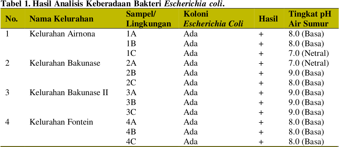 Analisis Kualitas Sumber Air Minum (Air Sumur) Masyarakat di Kecamatan Kota Raja Kota Kupang Berdasarkan Jumlah Bakteri Escherichia coli
