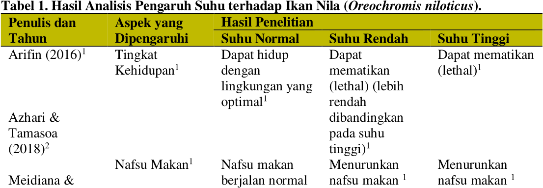 Studi Literatur : Pengaruh Suhu terhadap Ikan Nila (Oreochromis niloticus)