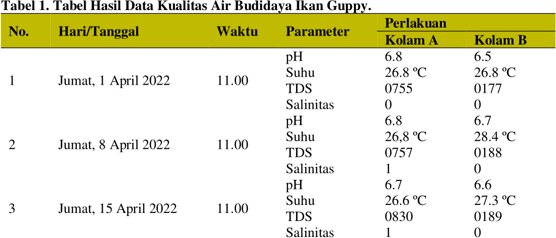 Pengaruh Penambahan Garam Ikan dan Probiotik terhadap Kualitas Air pada Ikan Guppy (Poecilla reticulata)